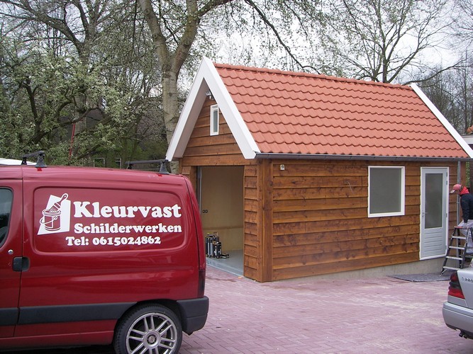 Werkzaamheden: Schuur gebeitst met een impregneermiddel met gebruik van Sikkens lak. |