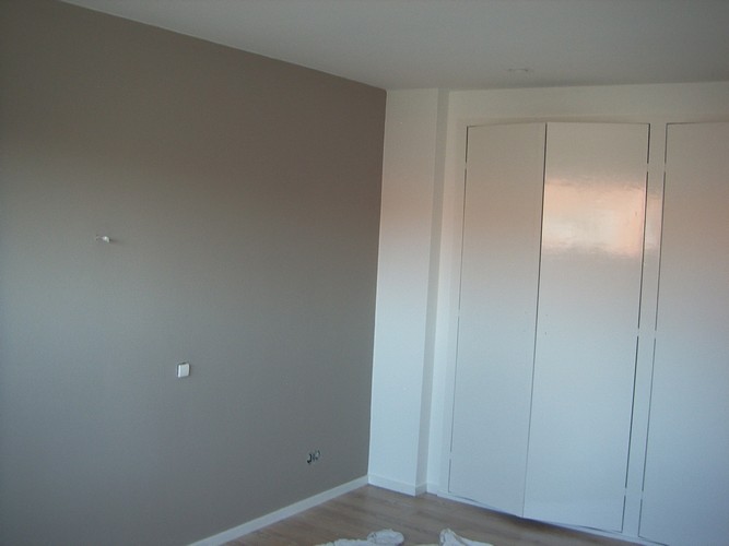 Werkzaamheden: Slaapkamer muren en kastenwanden opnieuw geschilderd met gebruik van Veveo Latex en Sikkens lak. |